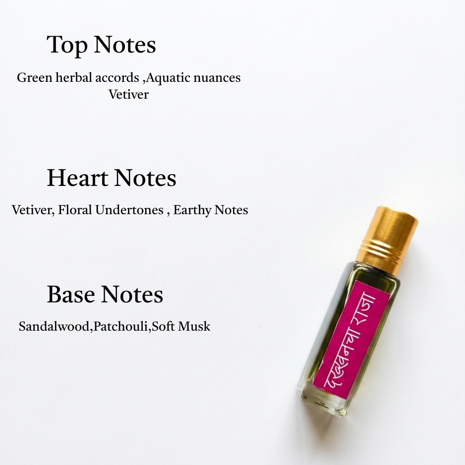 As it settles, sandalwood, patchouli, and soft musk create a smooth, long-lasting base, with a gentle amber warmth that lingers like sacred earth after rain. Traditionally suited for puja and spiritual rituals, this non-alcoholic attar is perfect for daily wear and moments of devotion, crafted for those who carry strength, faith, and the spirit of the land within.